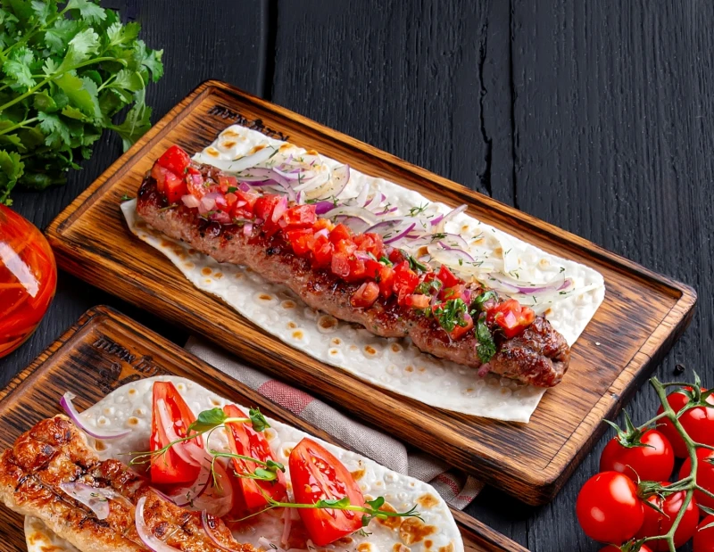 Ароматный кебаб из рубленной баранины с пряными специями, подается с сальсой из свежих томатов на домашней лепешке